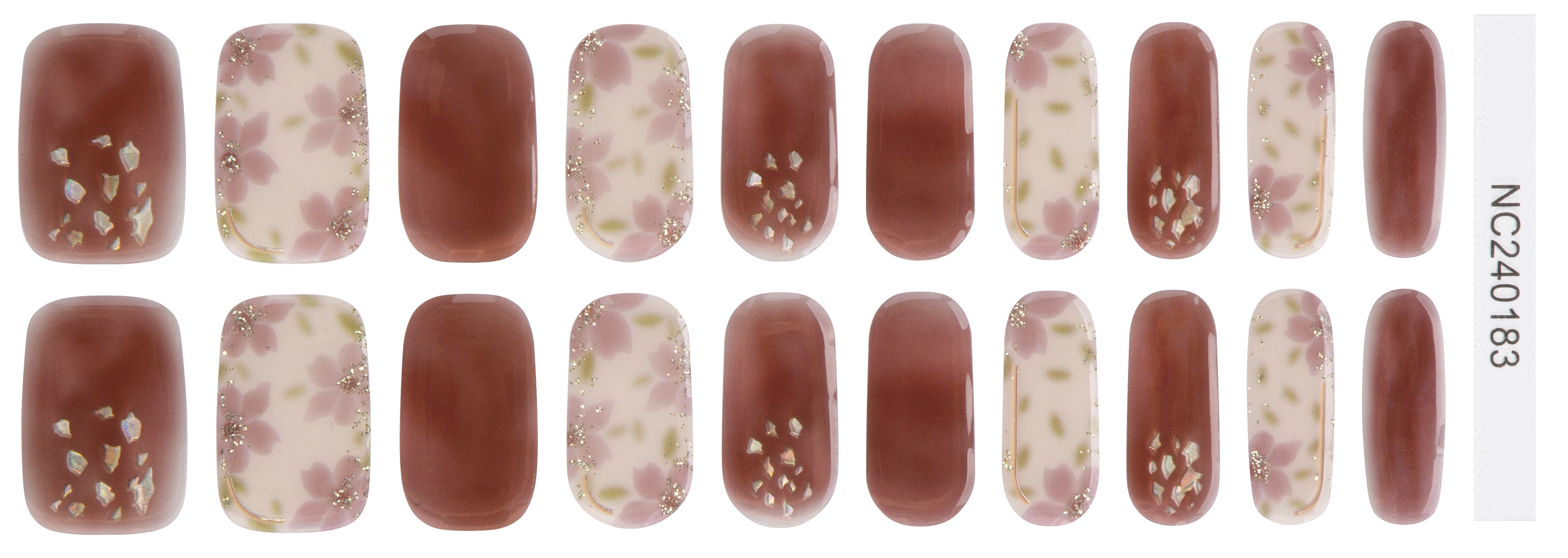 A romantic blend of warm mocha tones and soft floral blush designs, adorned with delicate gold glitter for a dreamy, feminine finish.
