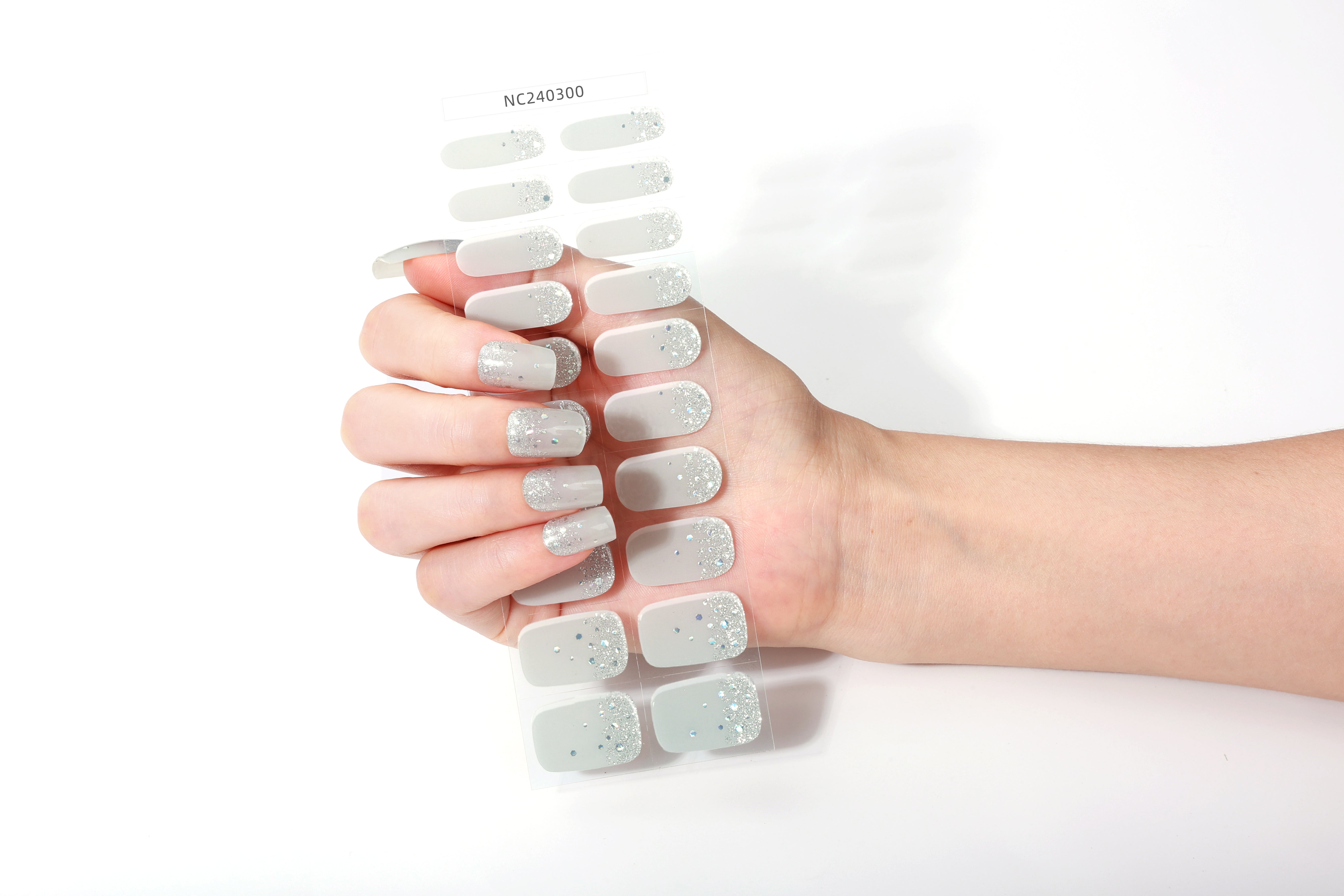 Frosted white meets silver sparkles—perfect for chic, minimal, and festive styles.