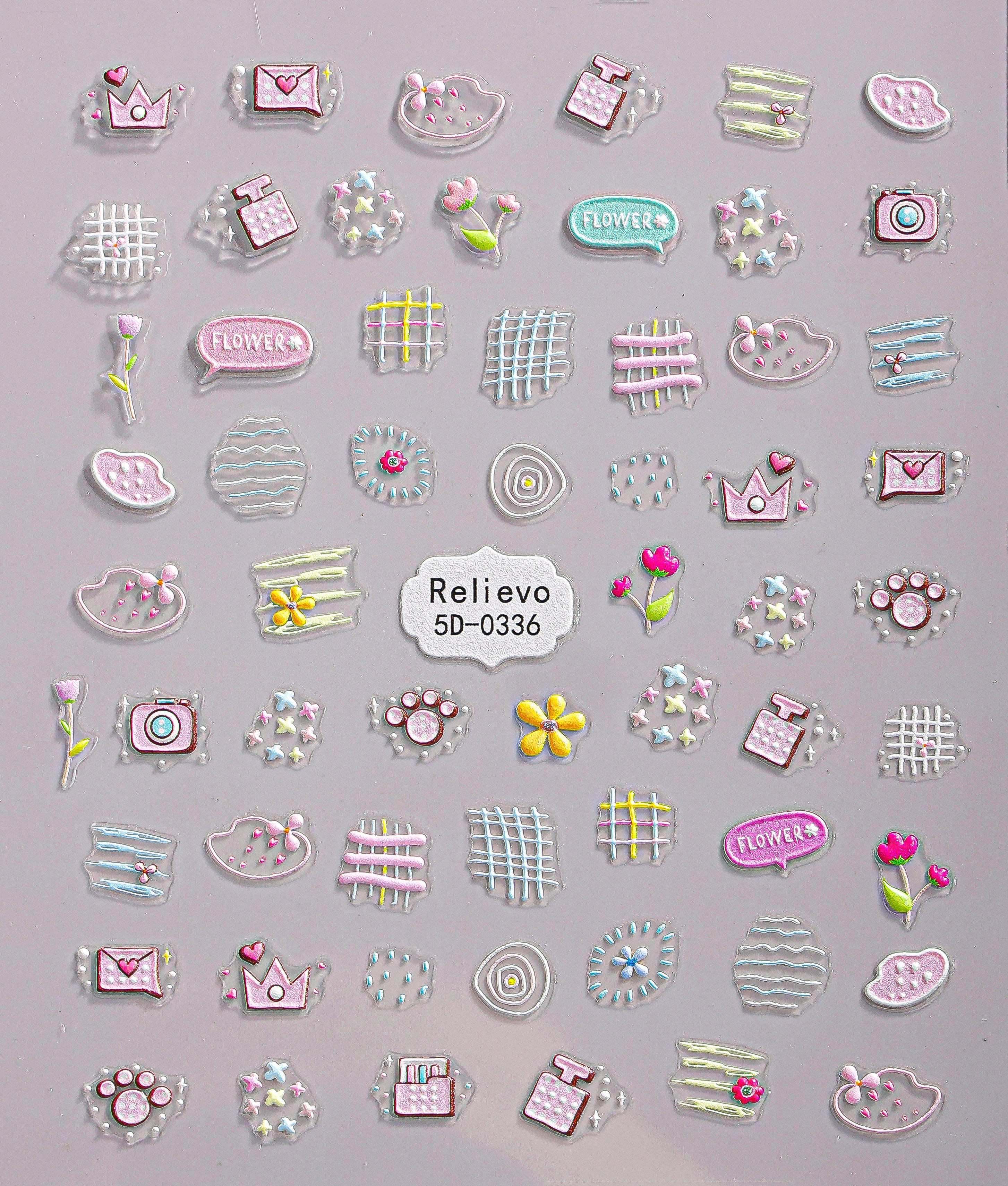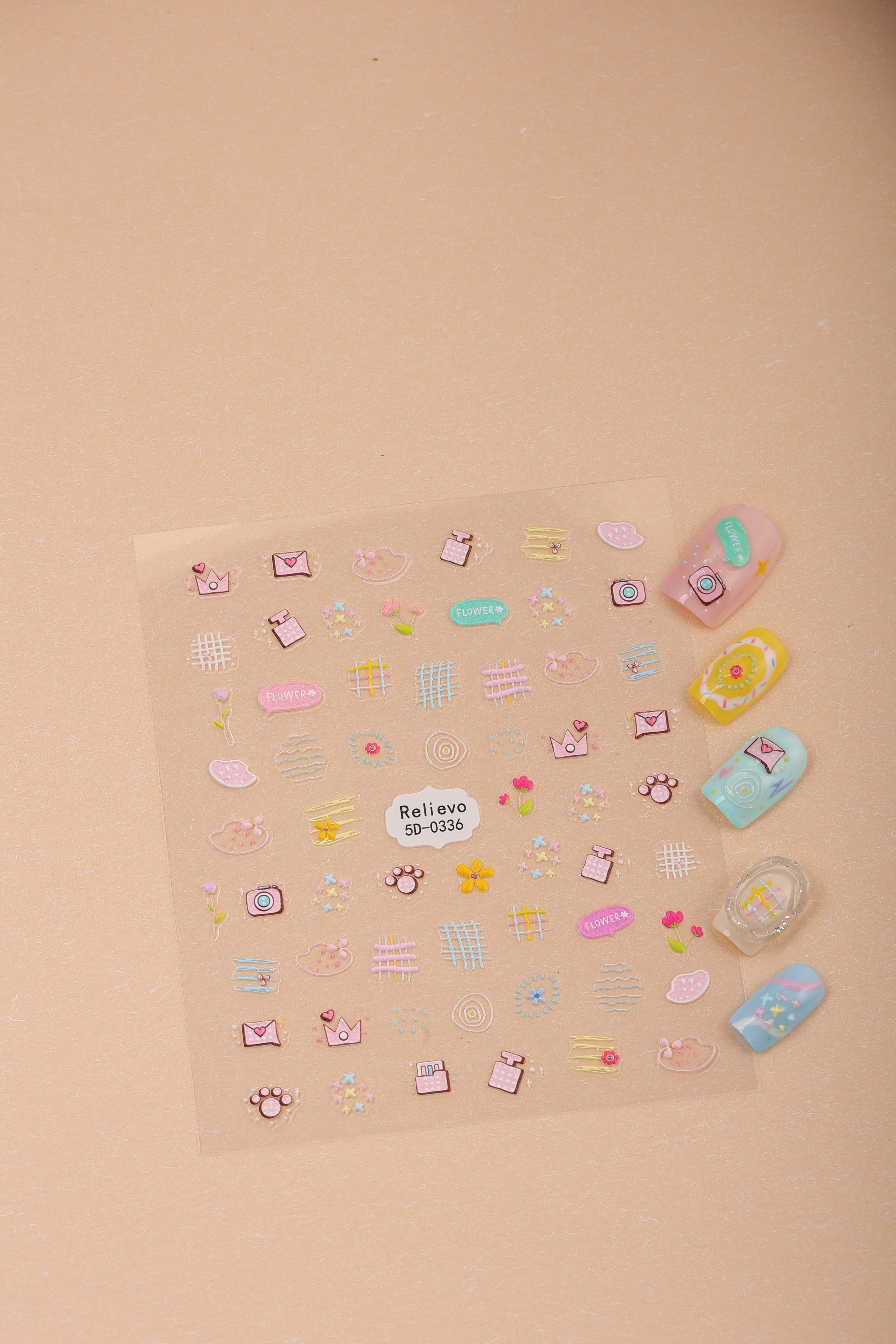 A soft mix of pastel sketches—flowers, stars, perfume bottles, tiny hearts, doodle grids, and sparkly accents. Perfect for creating playful, artsy, coquette-inspired manicures.