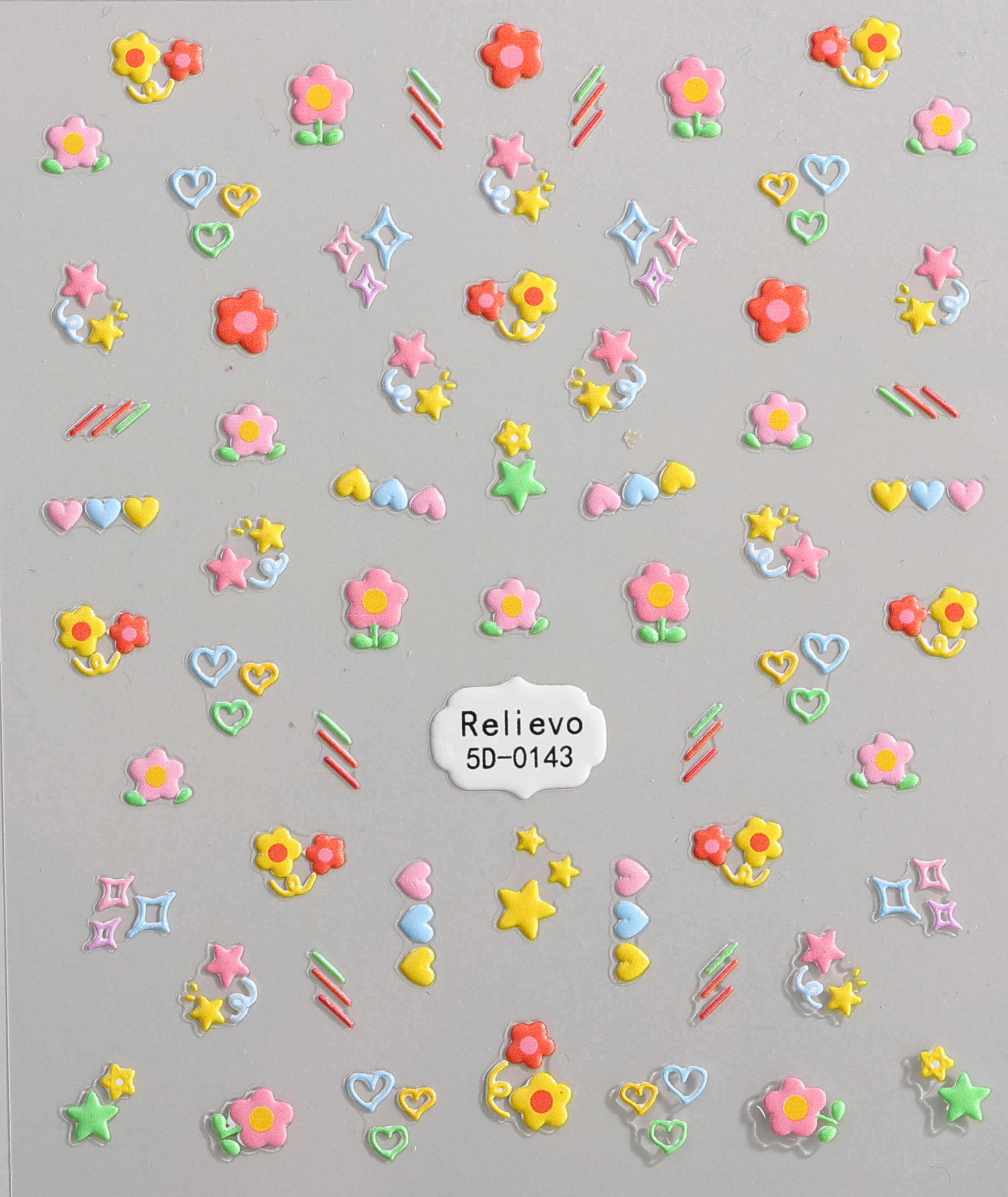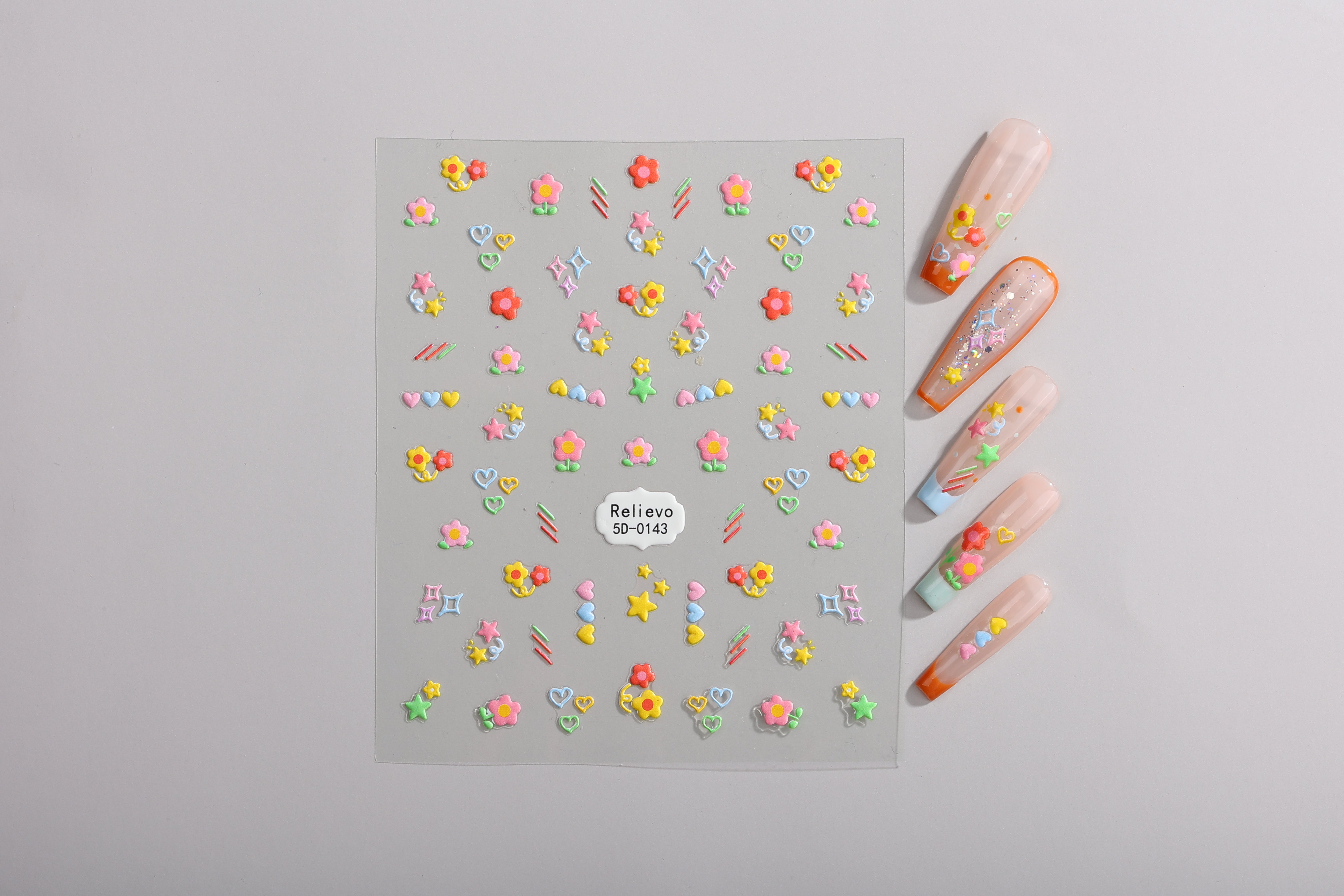 Cute pastel flowers, stars, and hearts that look like candy toppings for your nails.