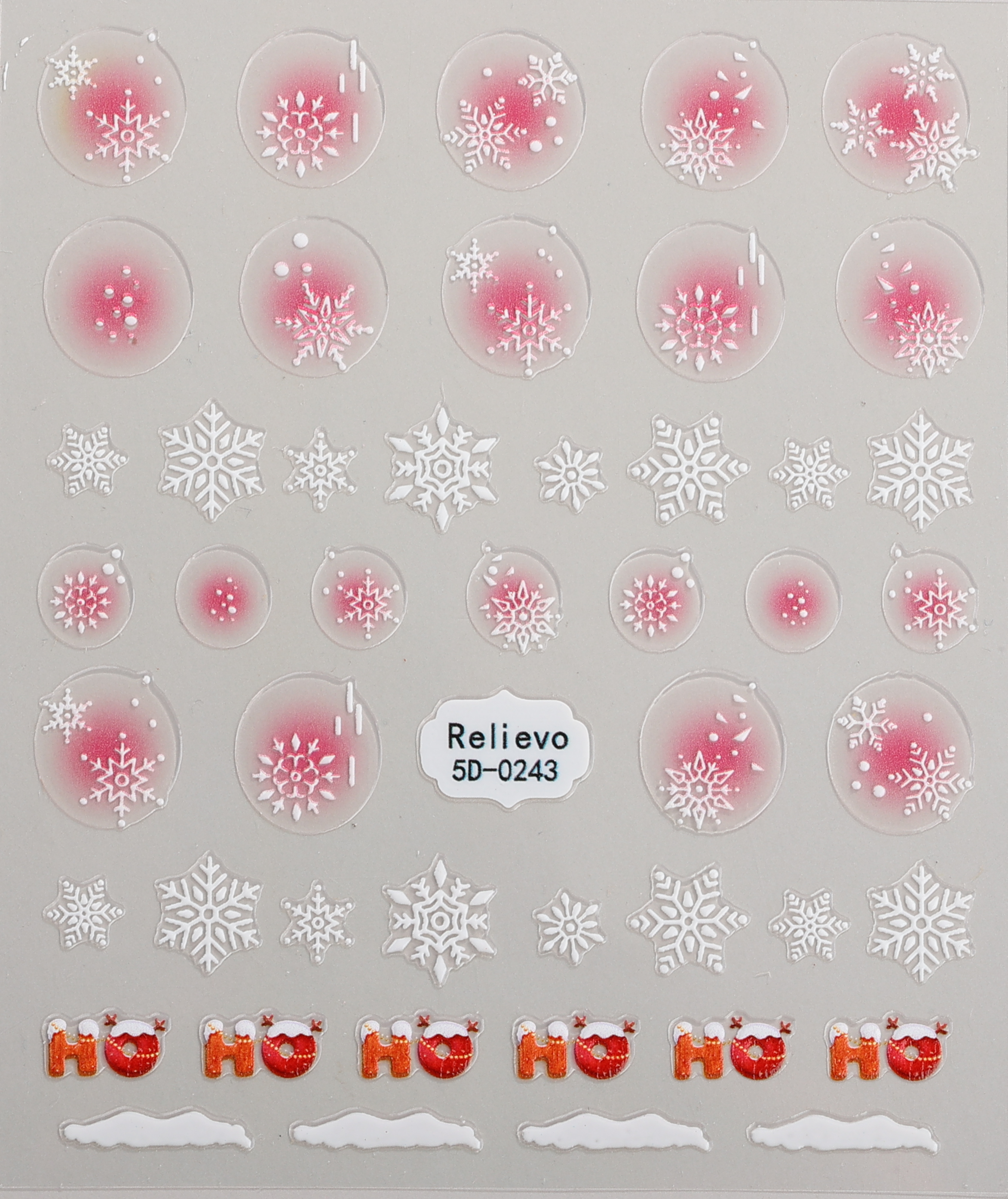 Rosy snowflake bubbles, crystal flakes, and “HO HO” accents for festive fun.