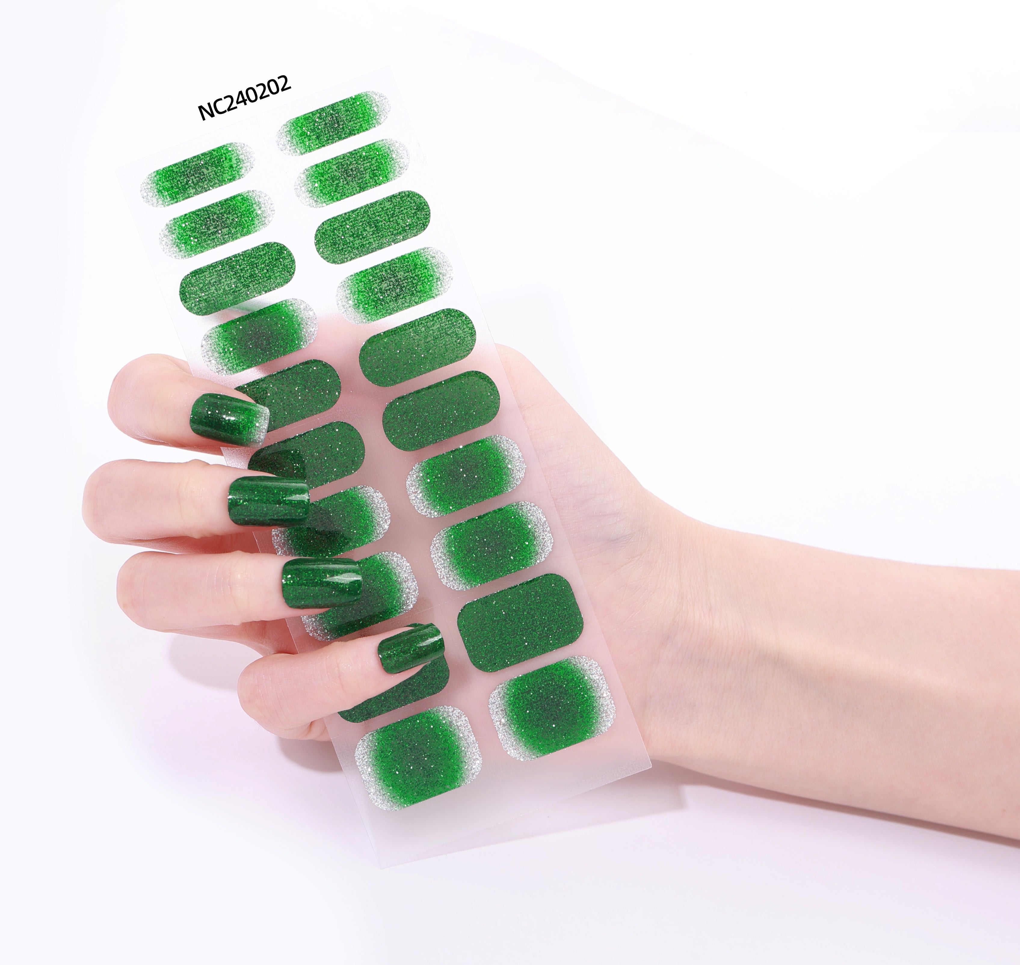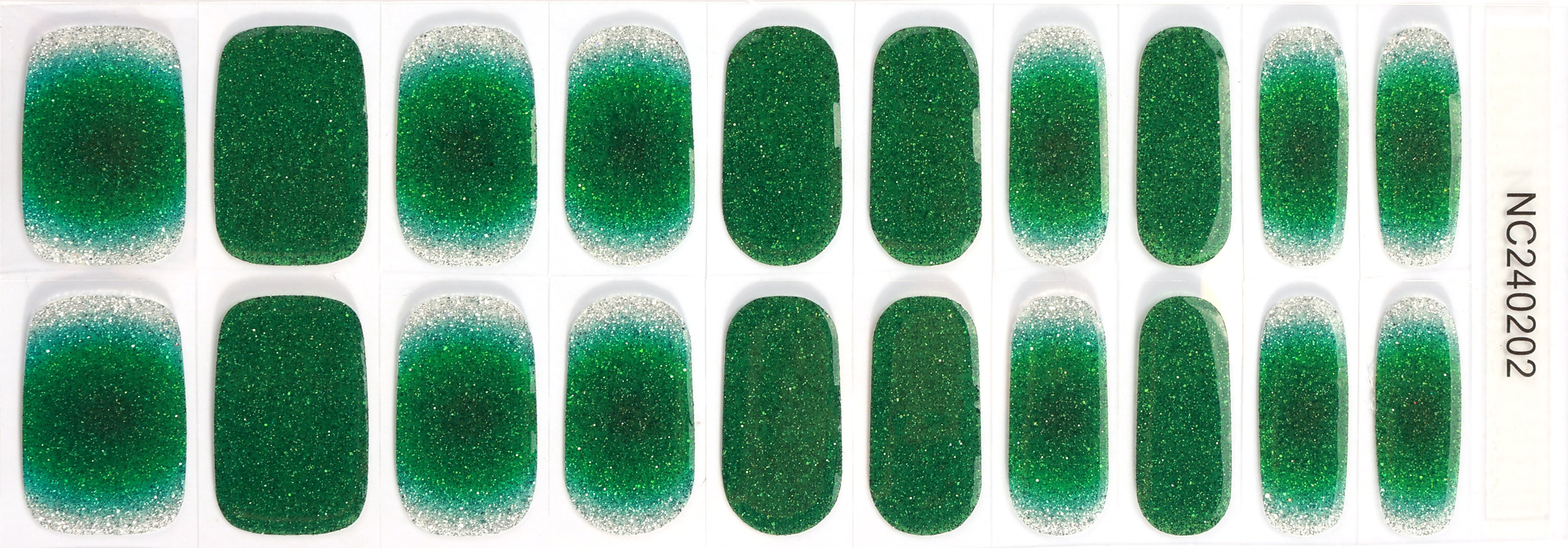 A rich emerald green base filled with ultra-fine glitter, giving the nails a gemstone-like sparkle.