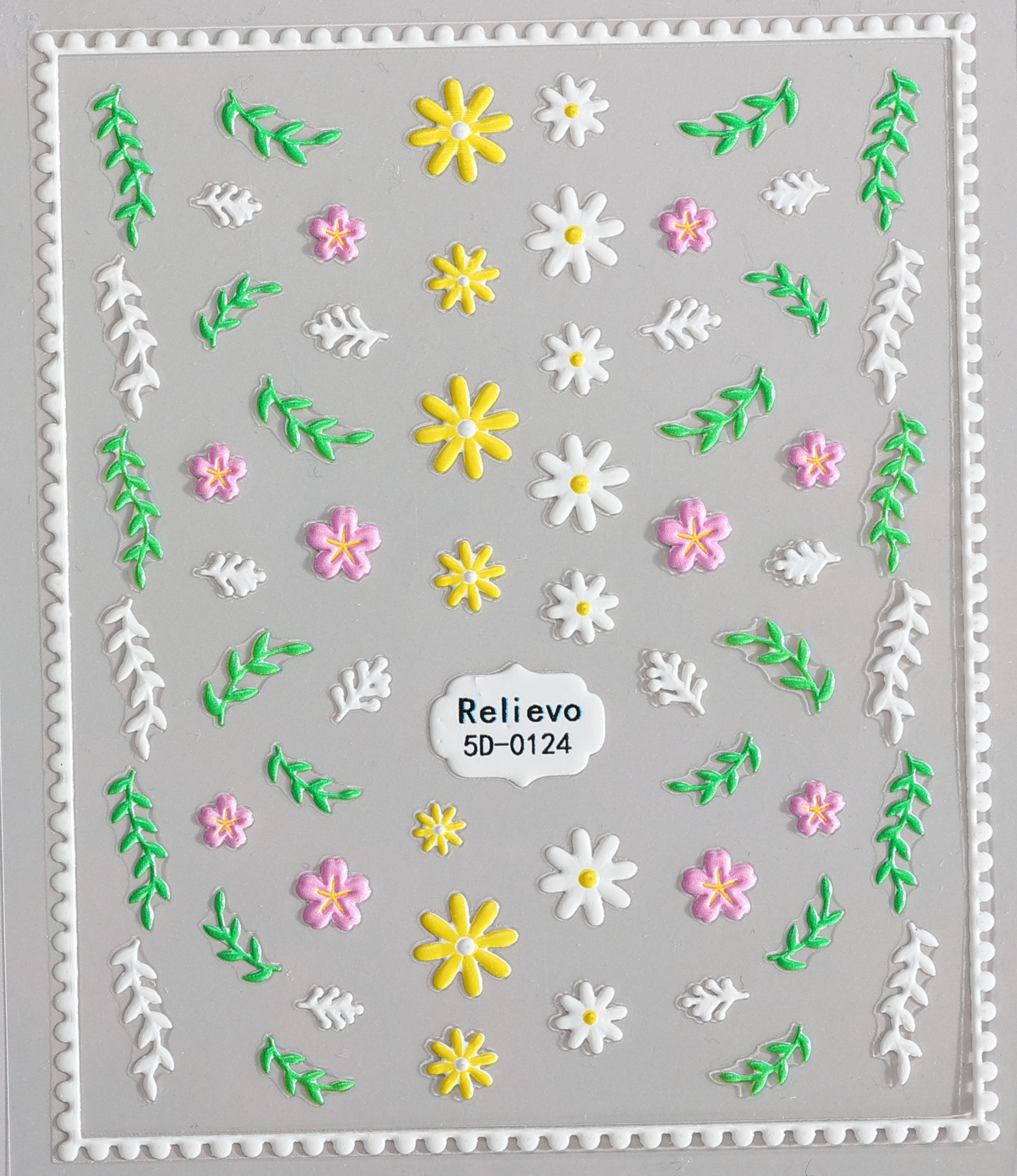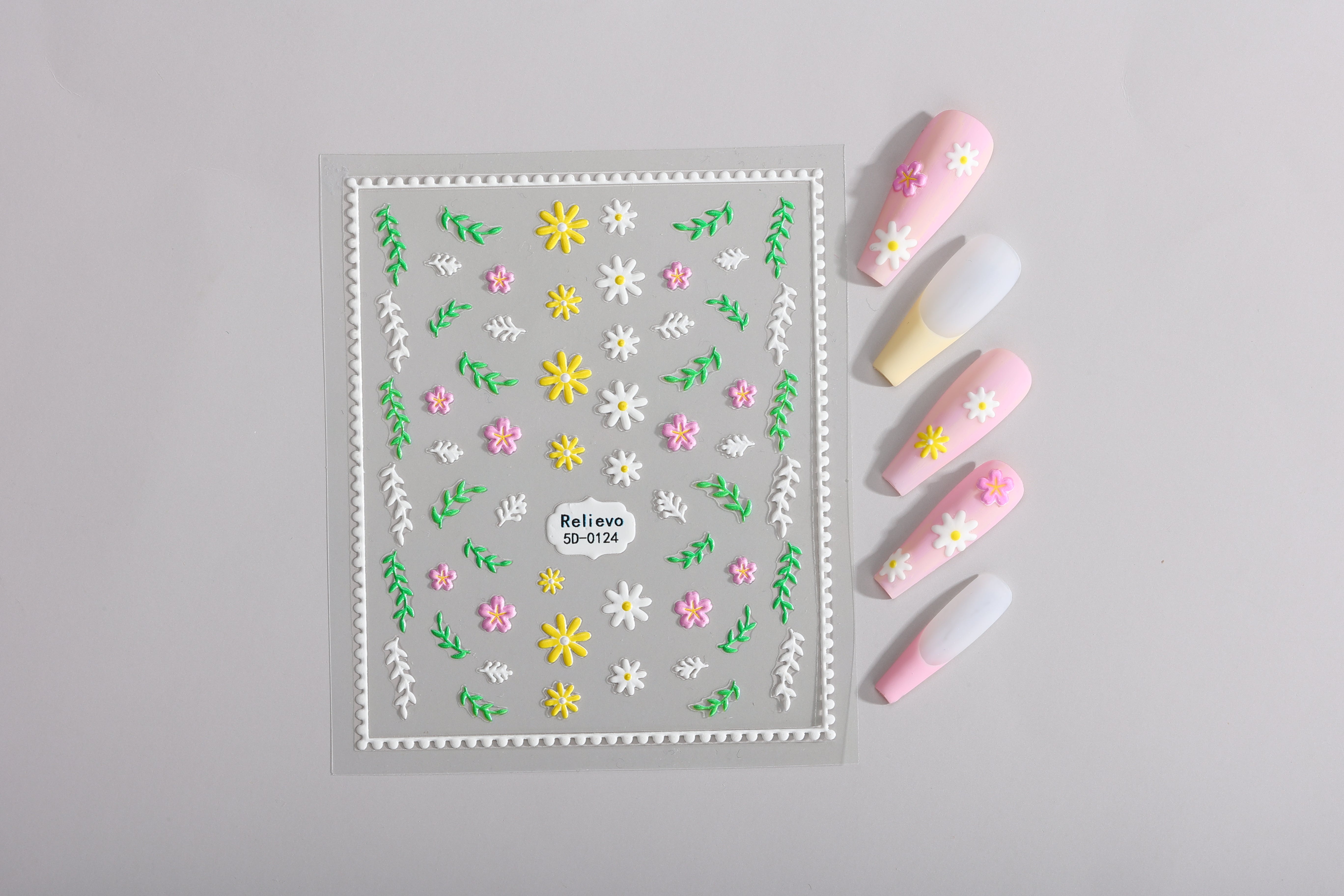 A cheerful blend of daisies, mini blossoms, and leafy accents for fresh spring nails.
