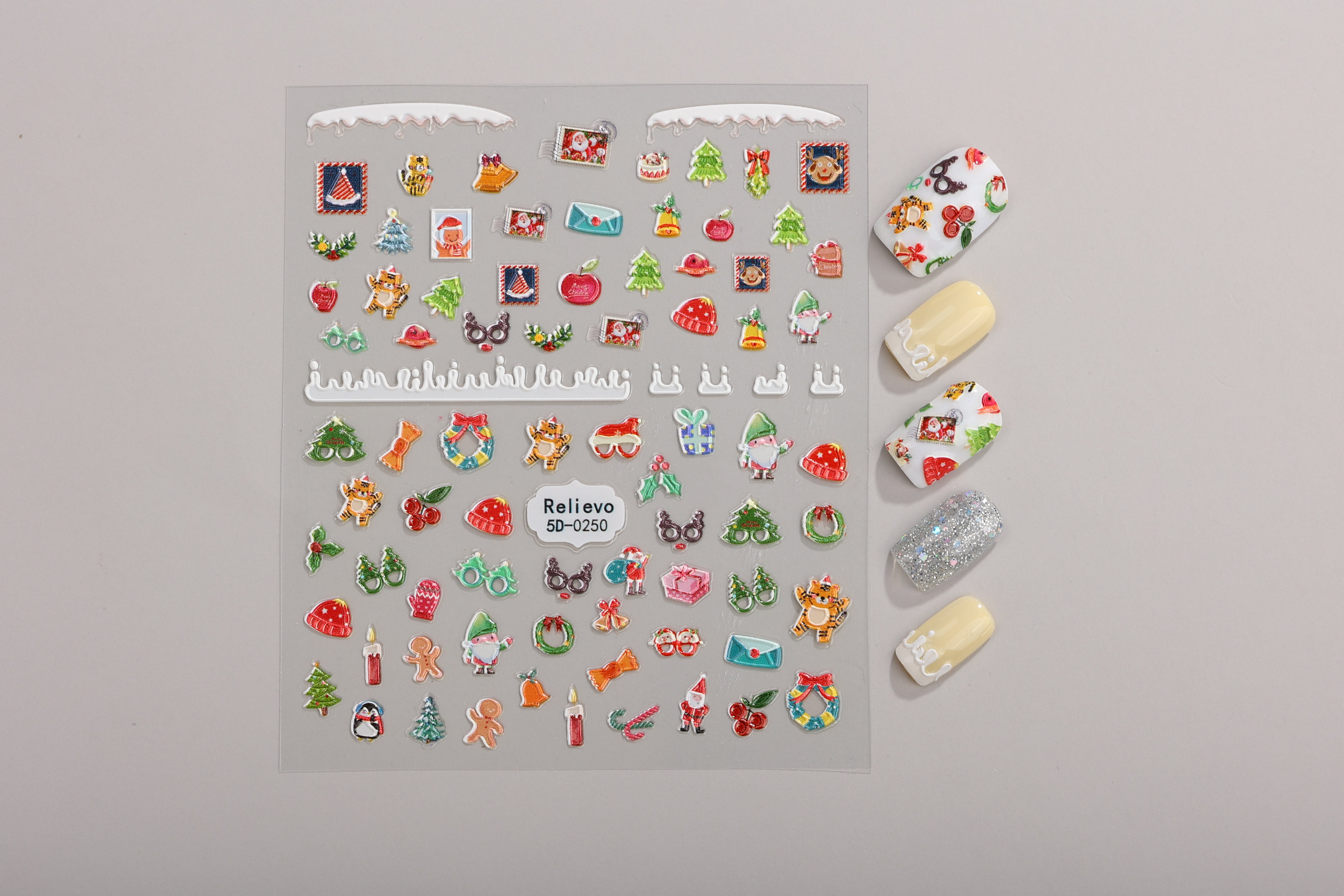 Packed with warm winter details, this sheet includes Christmas trees, candy canes, letters, ornaments, cozy hats, tiny reindeer, cherries, and candles. The 5D texture adds soft dimension, bringing festive cheer to every manicure.