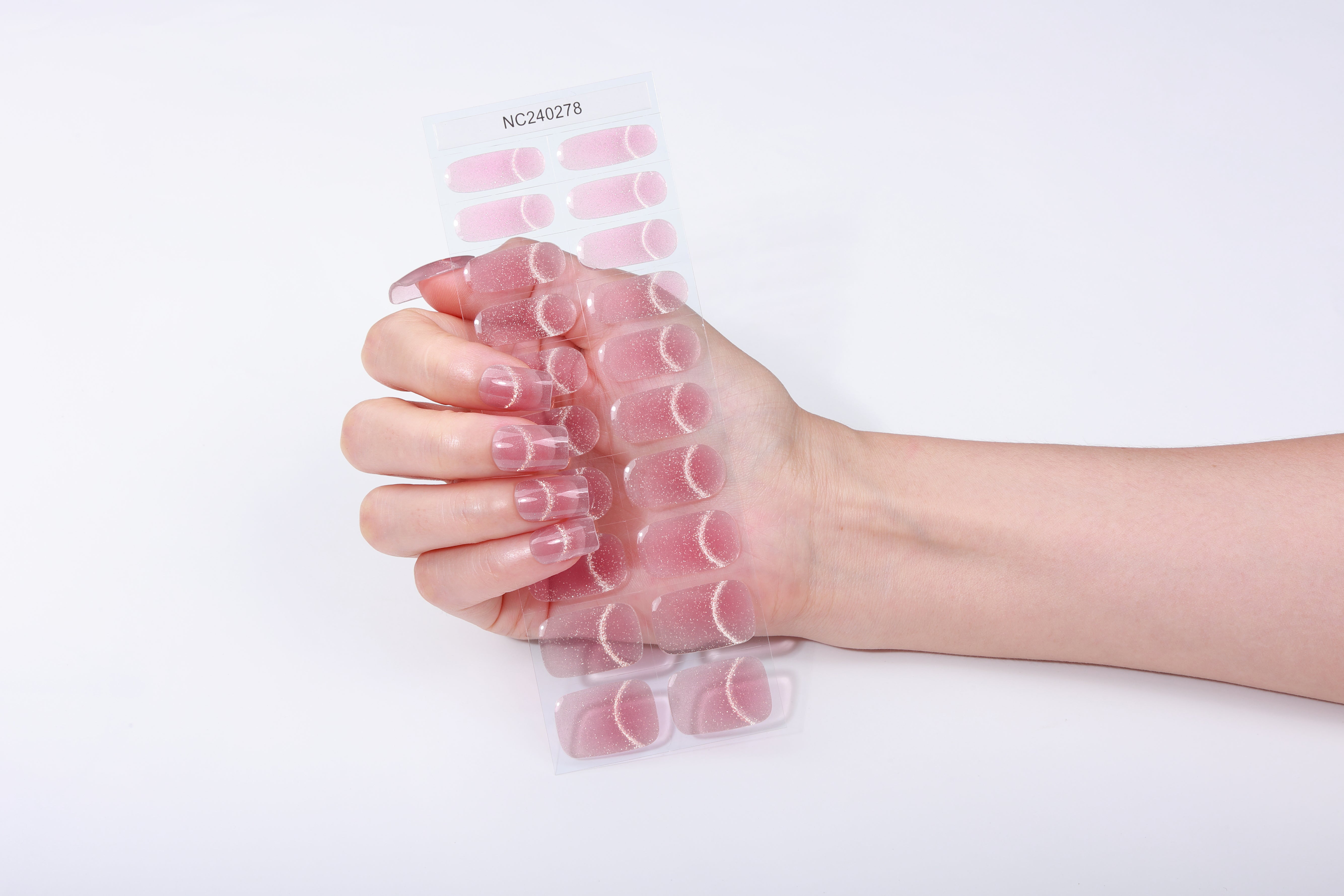 A sweet pastel-pink shade blended into a soft cloudy white base, dusted with micro-glitter for a soft, sugary shine.