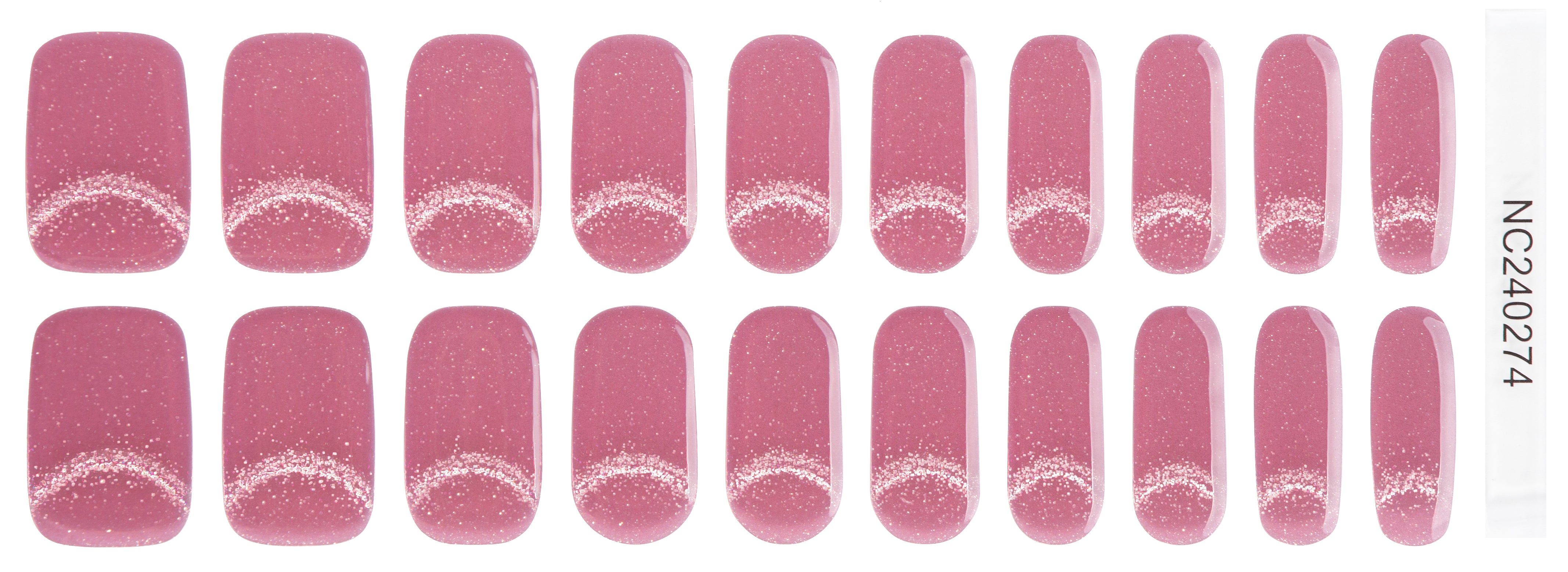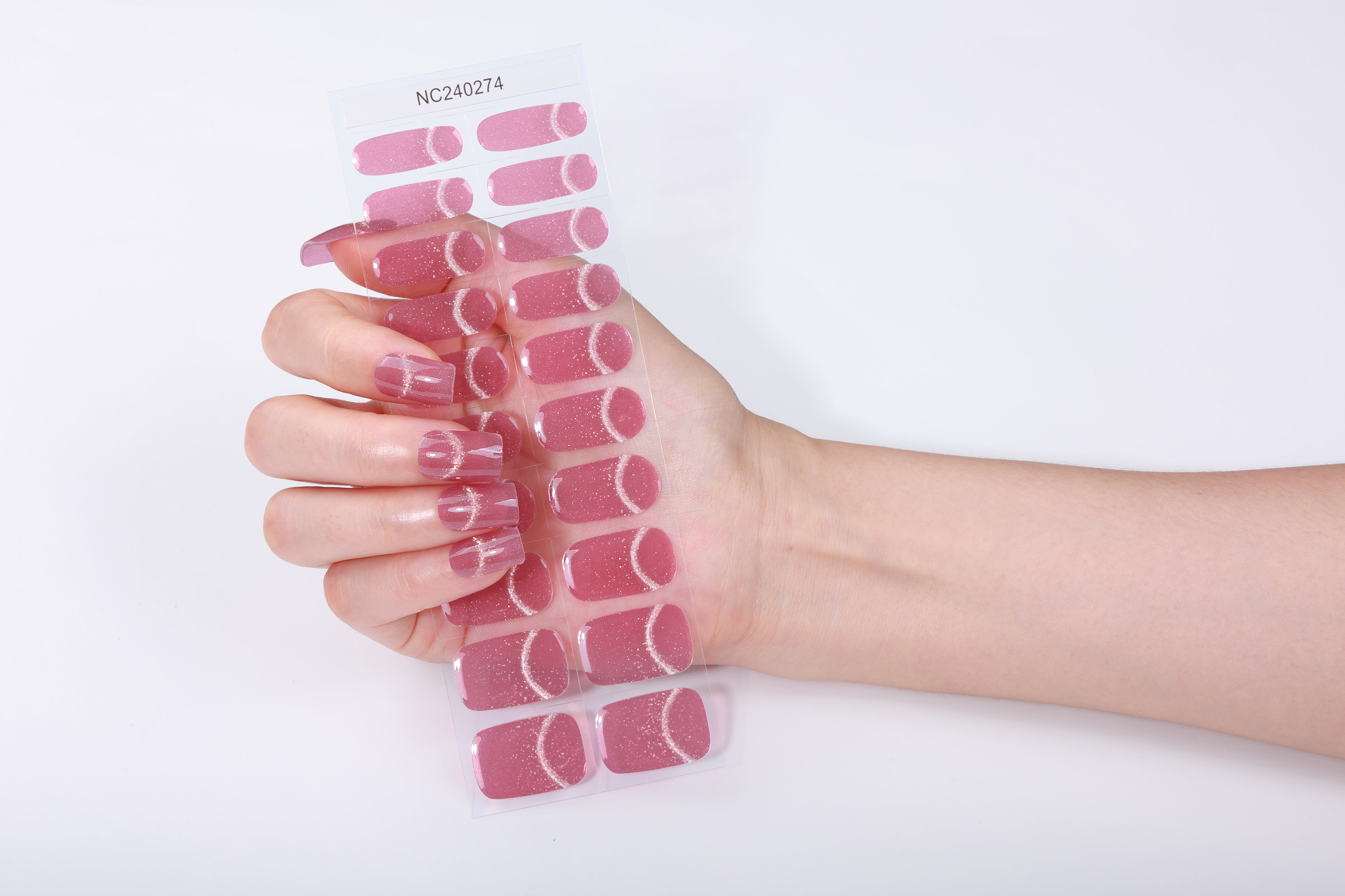 A mauve-rose base paired with a subtle sparkling arc reminiscent of moonlight glimmering over blush-colored petals.