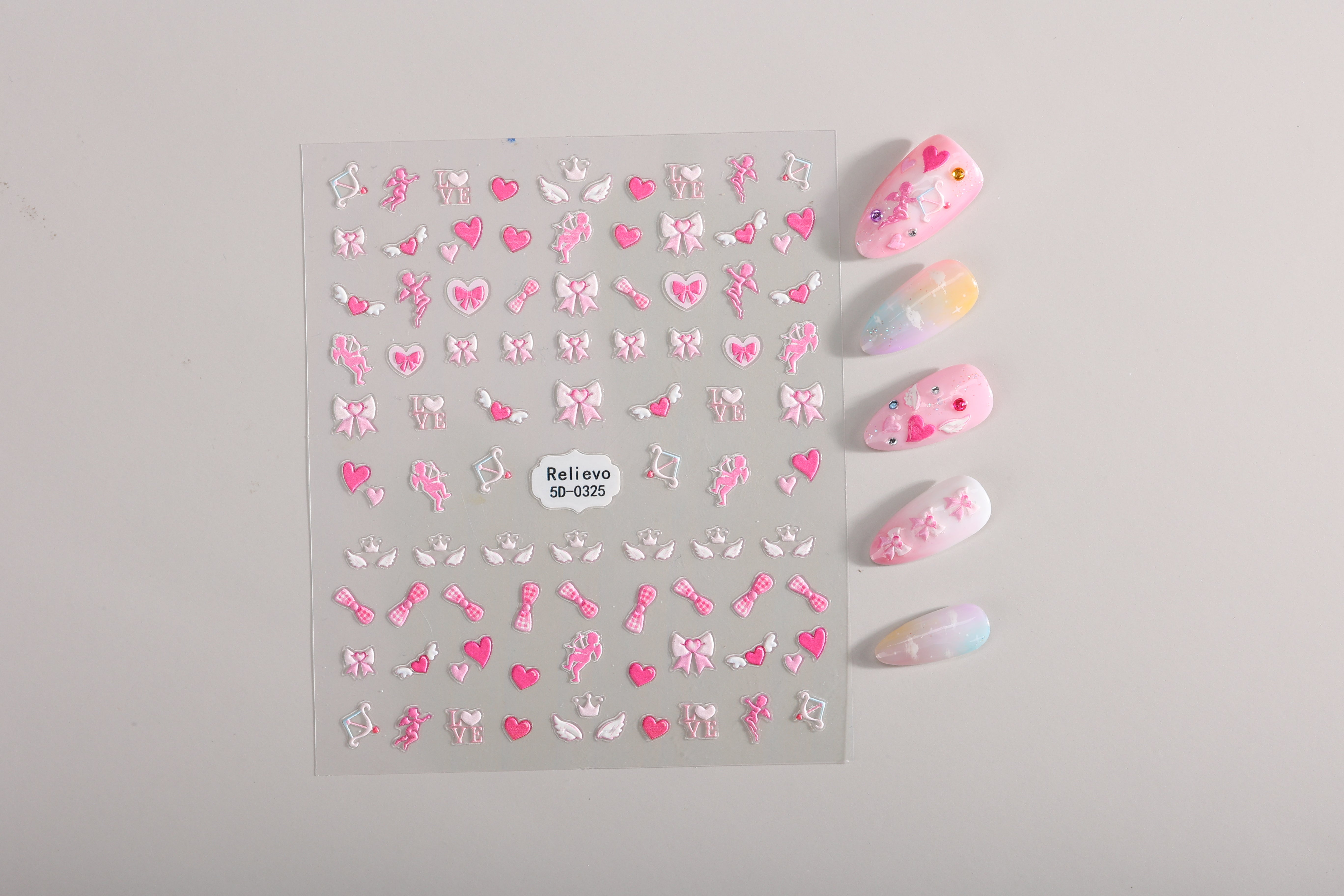 Pink gingham bows, bold hearts, and cherub details come together for a cute coquette look. A must-have for lovers of pink, girly designs, and Valentine-themed nails.
