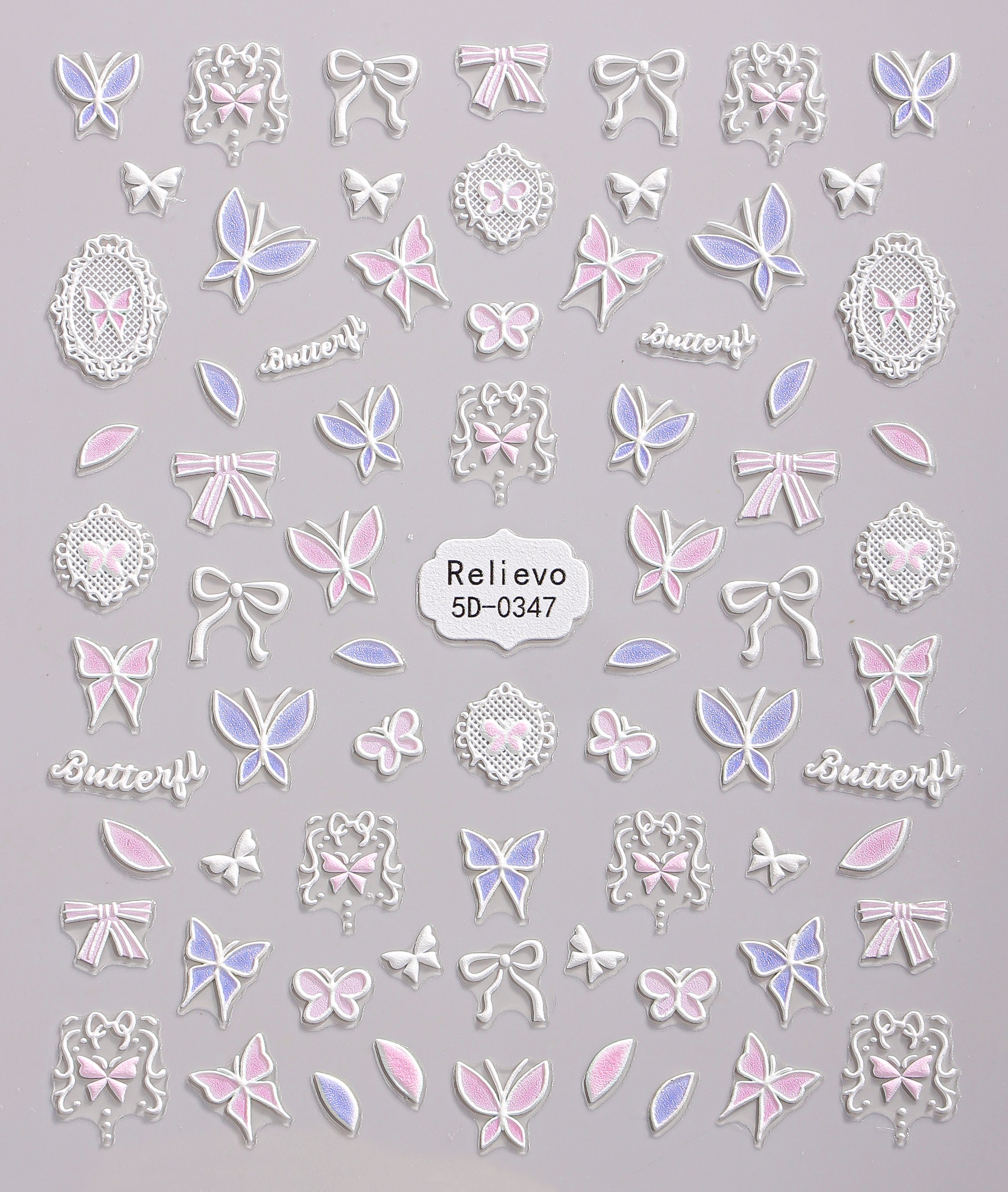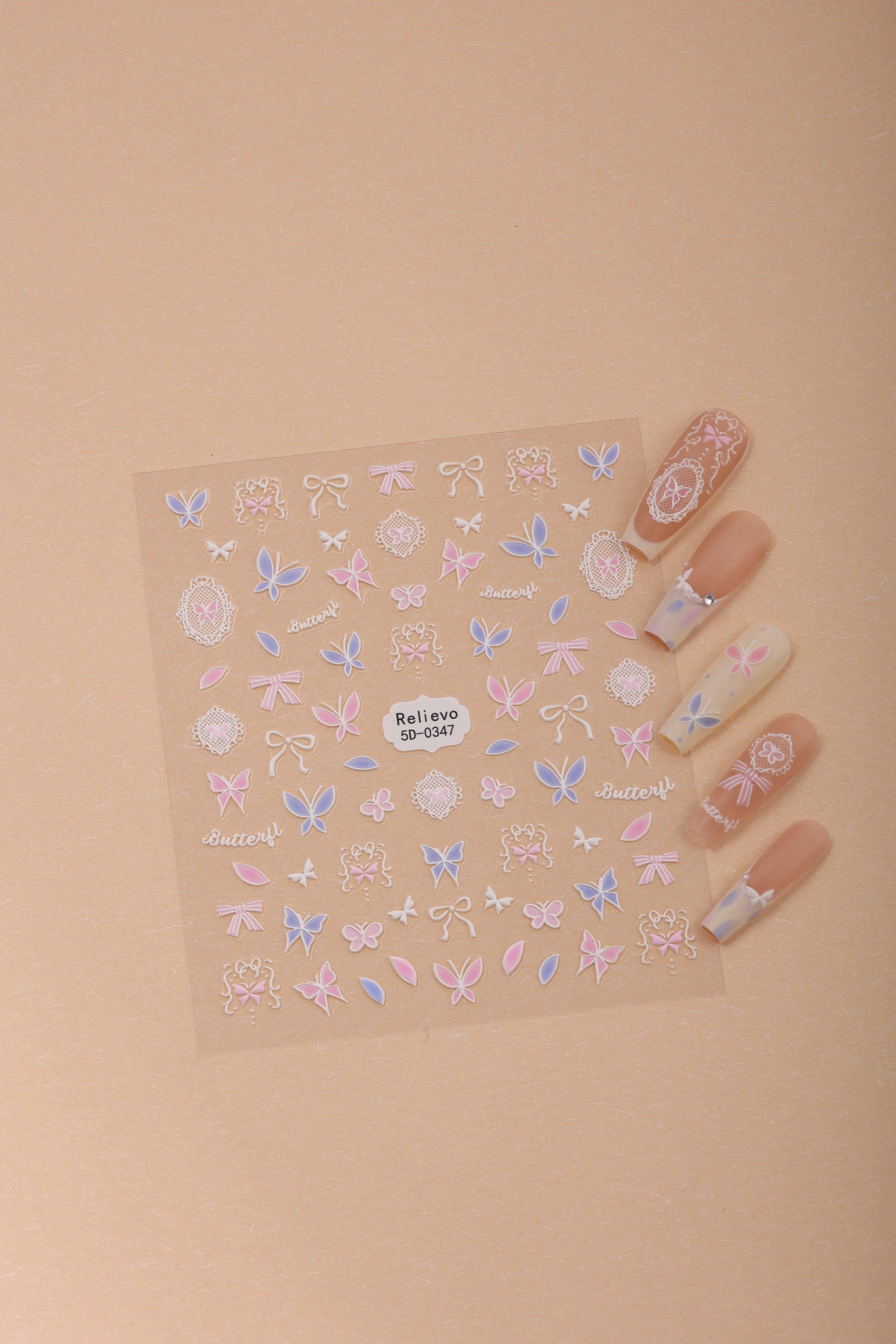 Soft lavender and blush-pink butterflies framed with delicate lace and ribbons create a dreamy, feminine aesthetic. Perfect for airy, elegant spring looks.